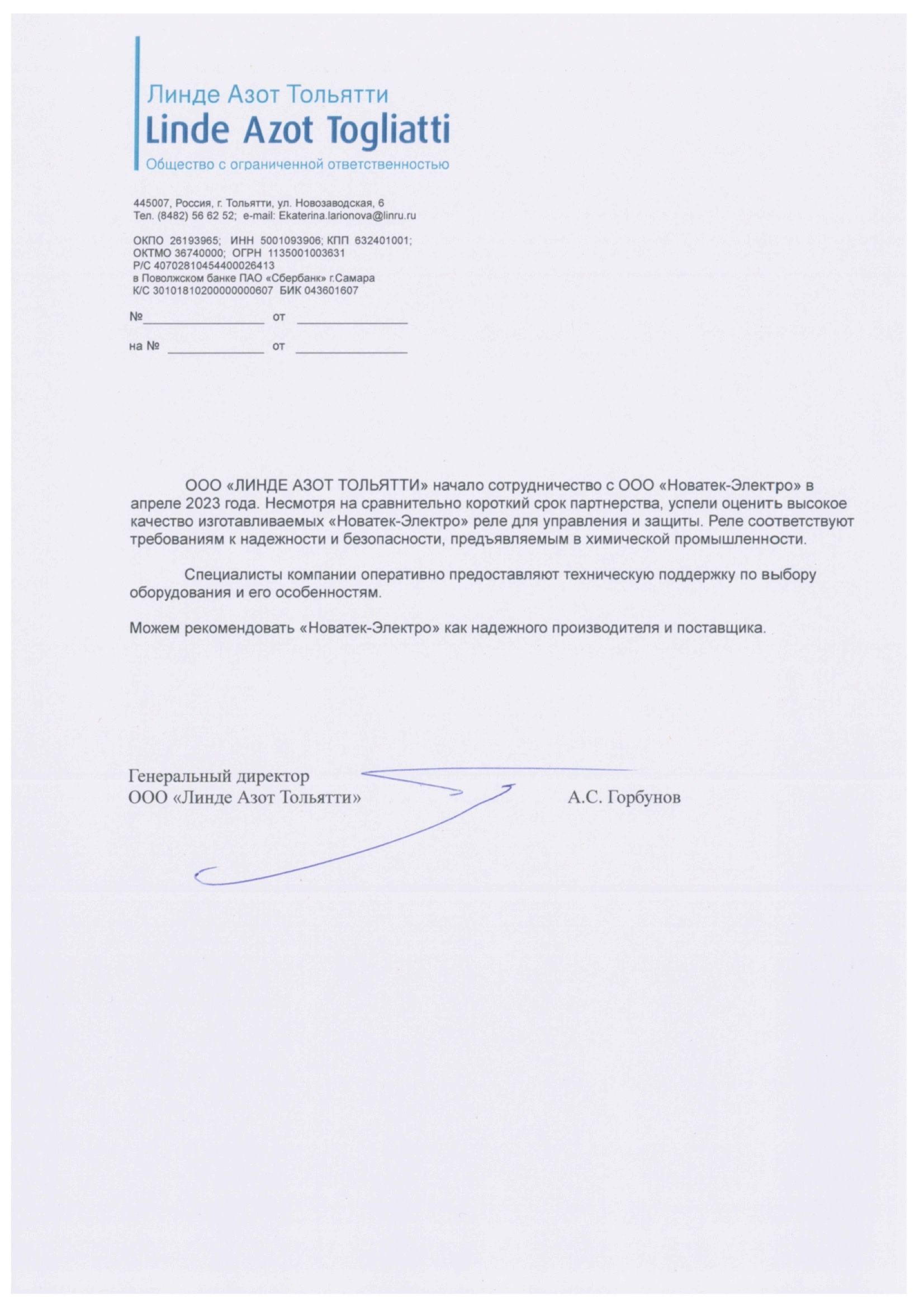 Array ООО «Линде Азот Тольятти»
